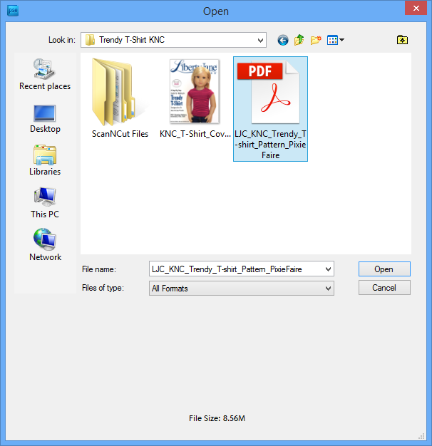- Scan the PDF page, and save as a JPG file. While this will certainly work, it is harder to get a perfect scan with the pattern pieces exactly straight.