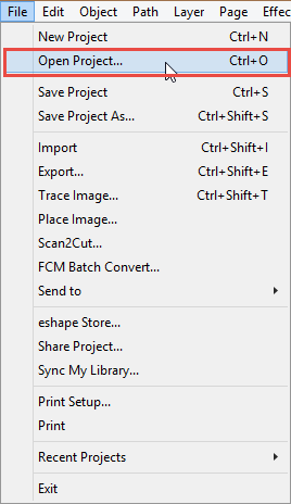 - If you do not see the correct file on the “Recent Projects” list, then start at the top of the File menu and select “Open Project…” to find your file: