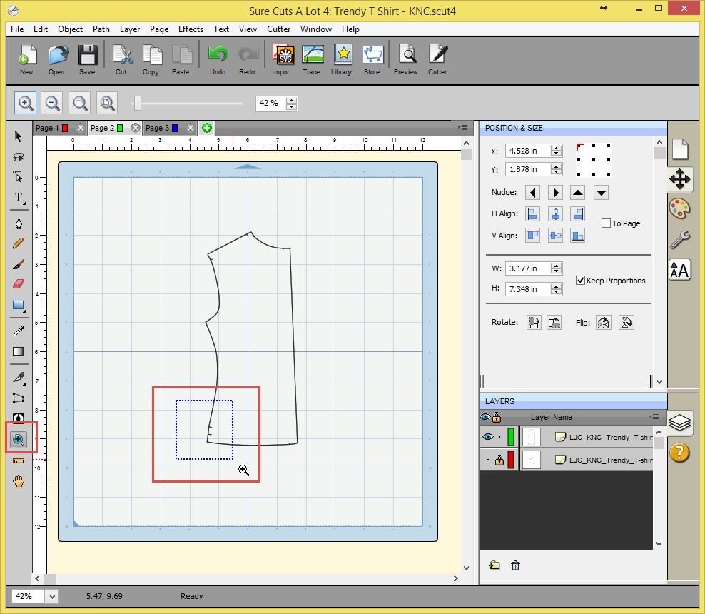 - Zoom in on the View menu. I find the easiest way to do this, at least initially, is to select the outline and then “Zoom Selection”: