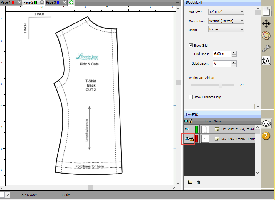 Because we want to see the pattern image to draw the lines that will be drawn on the cutter, we’re not going to straighten the pattern now. We’ll wait to do that until after the draw lines are complete. For now, though, those extraneous dots inside the outline will be a problem. They’ll get in the way when trying to draw the pattern markings, and they would also be cut on the cutter.