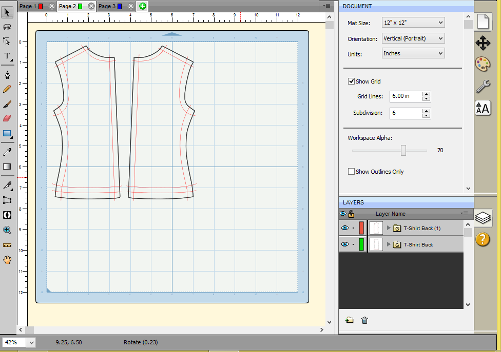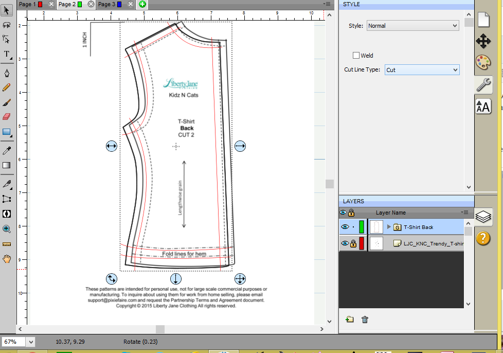 After converting the PDF to a JPG, bringing the file into Sure Cuts A Lot (SCAL) as both a background and outline, adding the pattern markings and addressing any issues with the pattern piece, we are finally ready to set up the pattern piece for cutting. To do that, we need to tell SCAL which lines are cut lines, which are draw lines, lay out the pattern pieces on a page for cutting, and export to a file appropriate for your cutter.