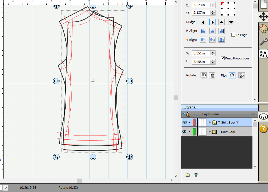- Paste the copy onto the screen. You’ll want to flip the copy over so that it will be cut out correctly. Select the copied piece, then go to the Position & Size menu, and click on the icon to flip the pattern piece:
